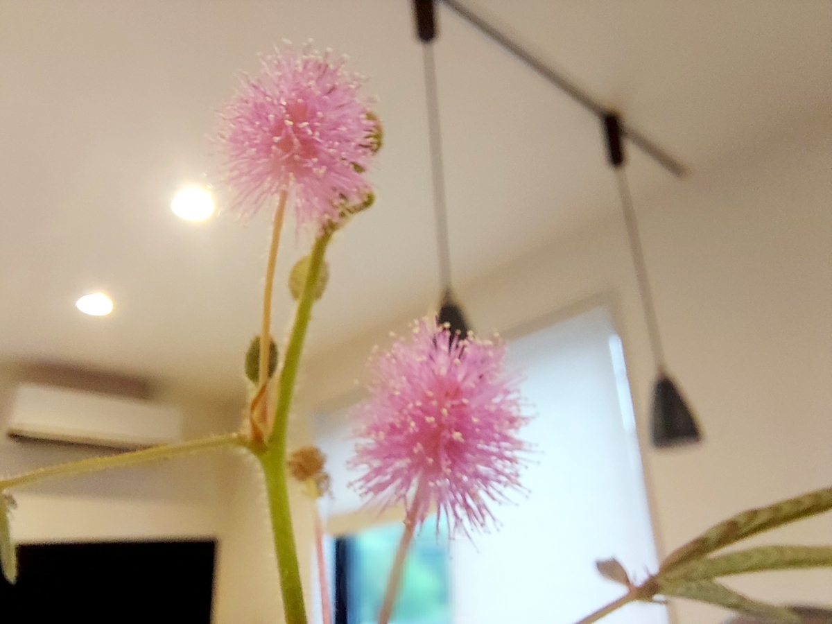 そんなオジギソウの花が育児猫家で咲いたのでご紹介です。