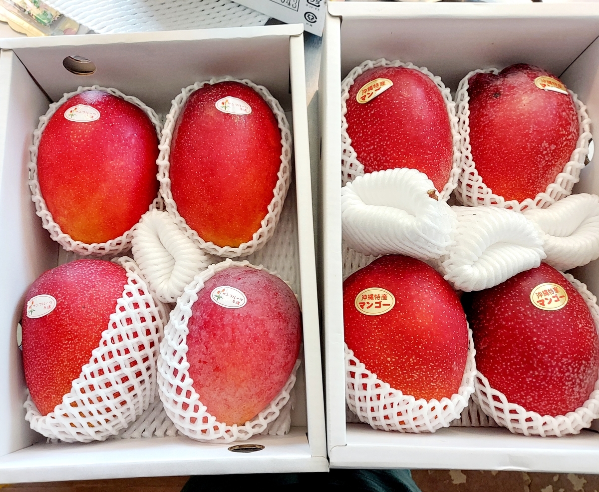 同じ沖縄産の「アーウィン」という種類のマンゴーだとわかります。
