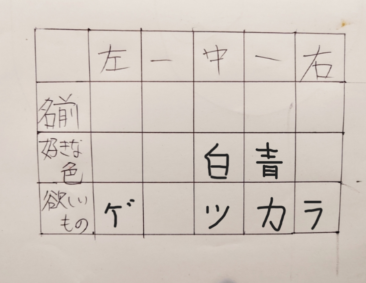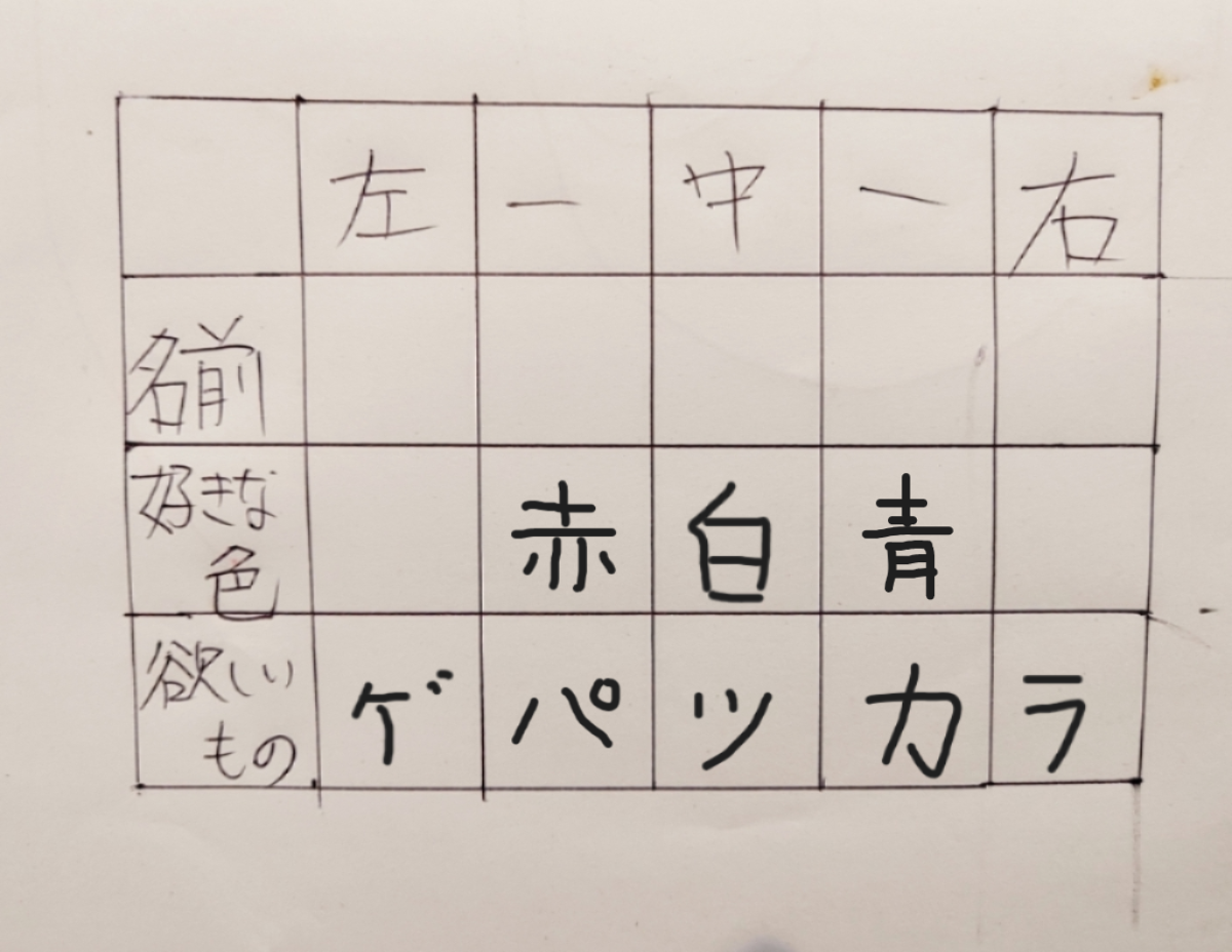 問題「かんた君の好きな色は?」