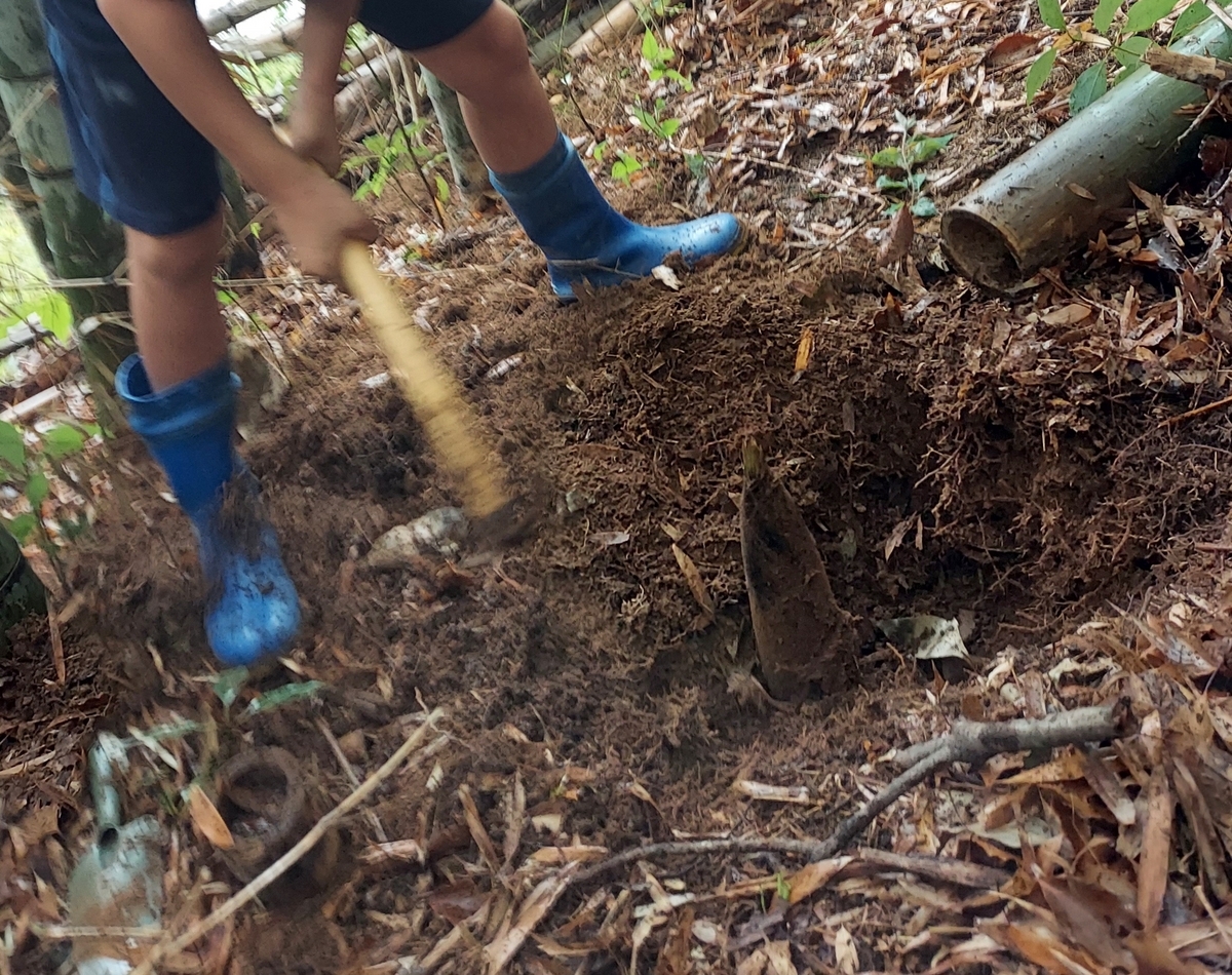 子どもたちはたけのこ食べるのも大好きなんですけど、やっぱり竹林でたけのこを見付けて掘るという作業がいちばん好きなようです。